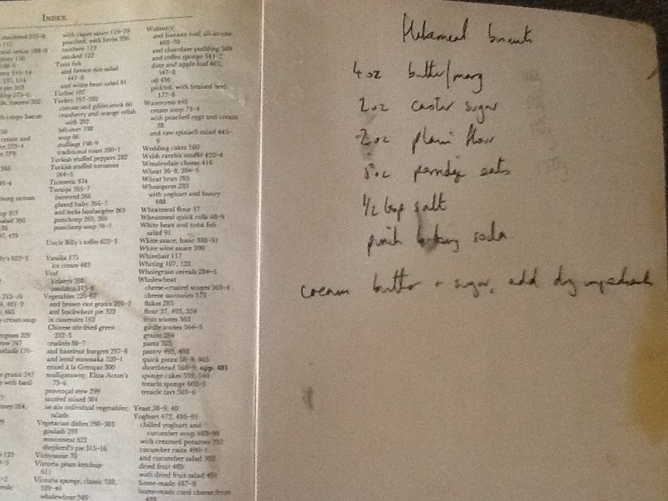 remember. I make them for my kids now. I’ve got the recipe written in the back of a Delia cookery book. If I’m feeling a bit woo, I might add some cinnamon or desiccated coconut.
