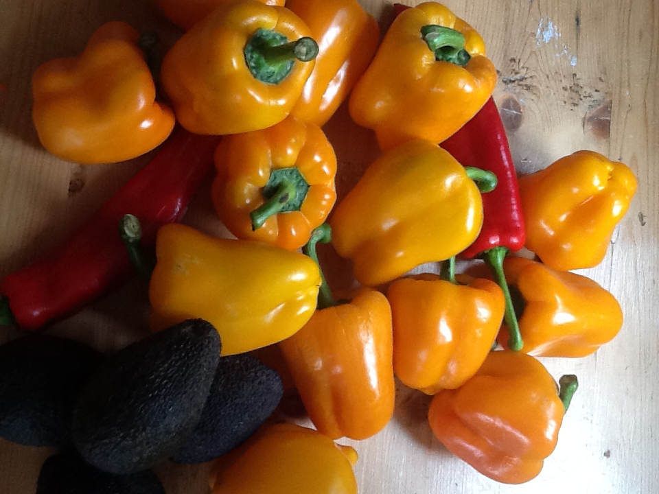 - LOTS of colourful veg – chopped peppers, grated carrots, wash spinach, shred lettuce….make a batch of Superfood Salad and Happy Carrots. Fill at least half of the box with these, the more colourful, the better.